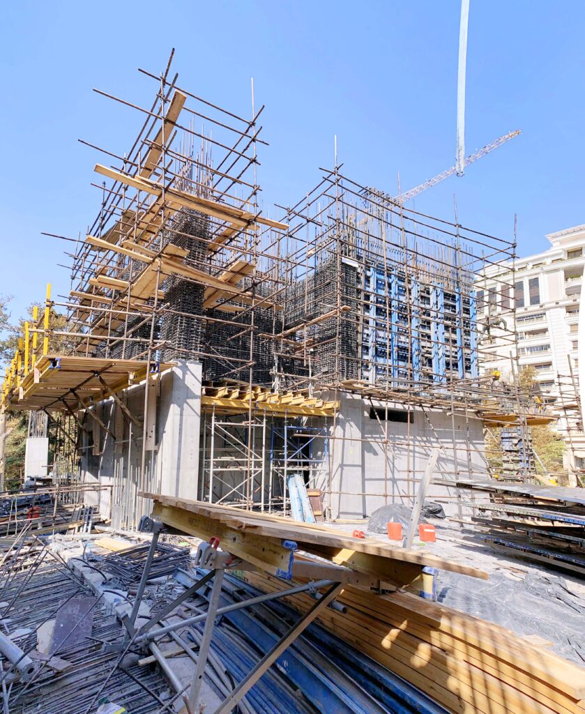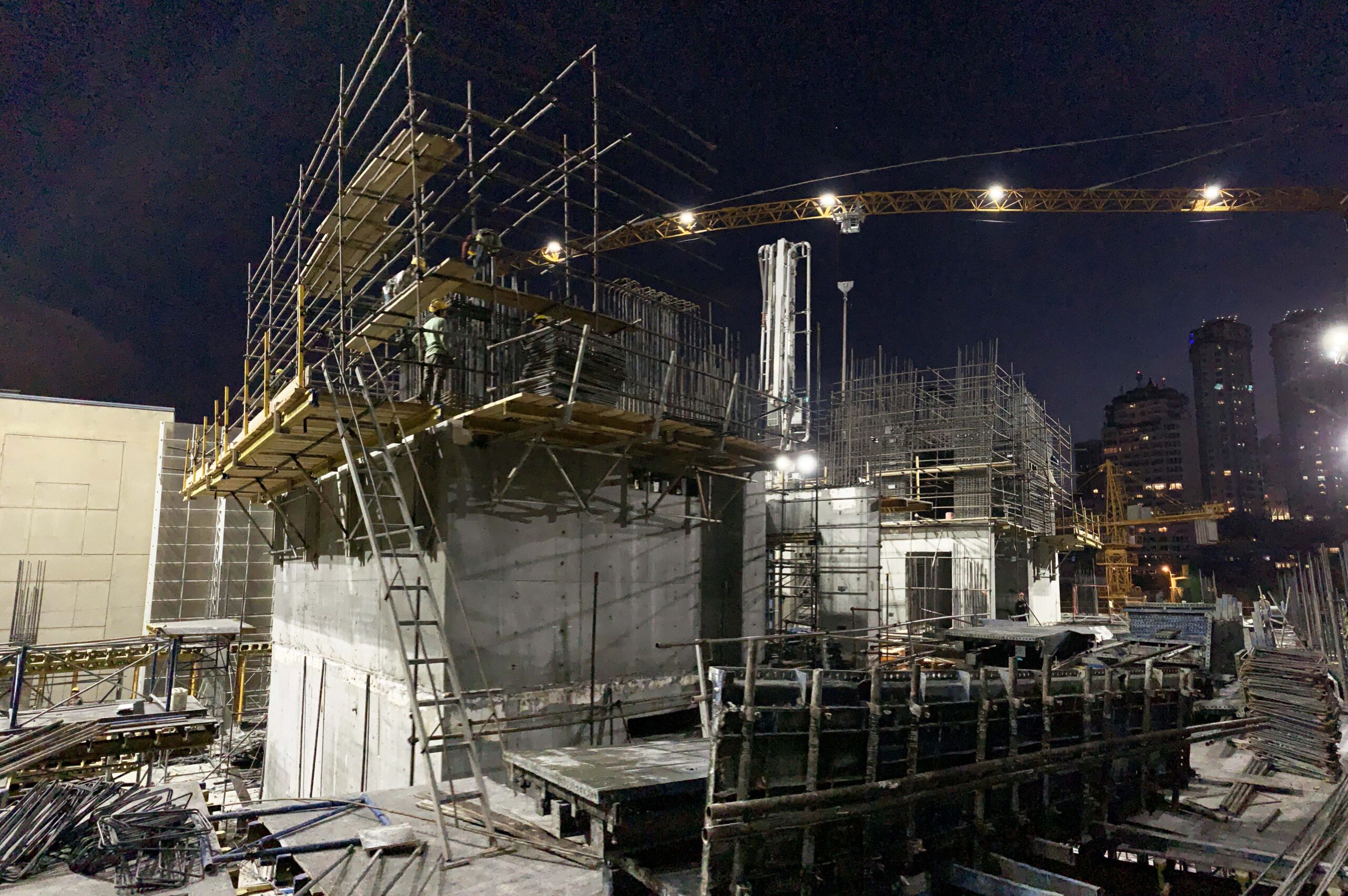 • جداسازی عملیات: در قدم اول و بعد از انجام عملیات فونداسیون، هسته‌ی مرکزی اجرا می‌گردد و بدون الزام اجرای کامل سقف متناظر، دیوارهای برشی به همراه کوپلرهای مدفون انتظار، بدون توقف ادامه می‌یابد که در امتداد روند عملیات اجرایی، هسته‌ی بتن‌ریزی شده آماده‌ی اتصال تیر و دال هم تراز خود باشد. شایان ذکر است زمان اجرای هسته‌‎ی پیشتاز حدود ۶ تا ۷ روز و ستون‌ها ۱۵ تا ۲۰ روز است، اما بدون وابستگی به سقف.